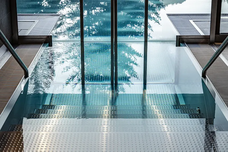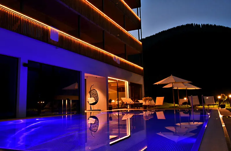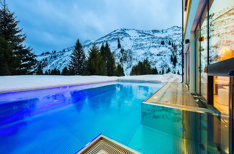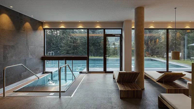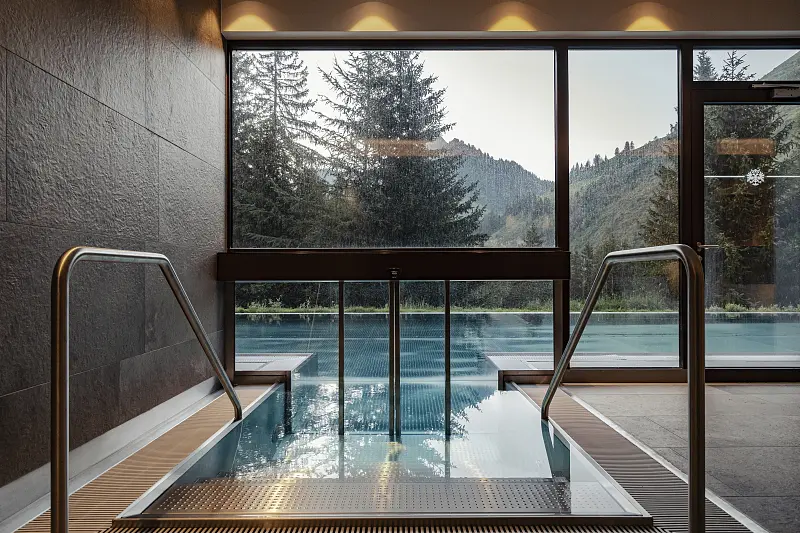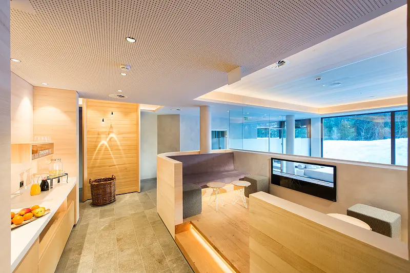 size wellness area 90 m², swimming pool area - free of charge, outdoor swimming pool 13 m x 6 m, spa area: children of 12 years, steam bath, sauna, finish sauna, infrared cabin, relax room, massage - optional payable in resort, lawn, deck chair - free of charge, sun umbrellas - free of charge