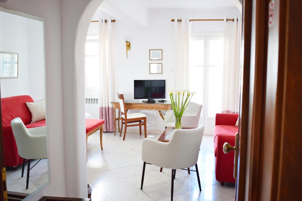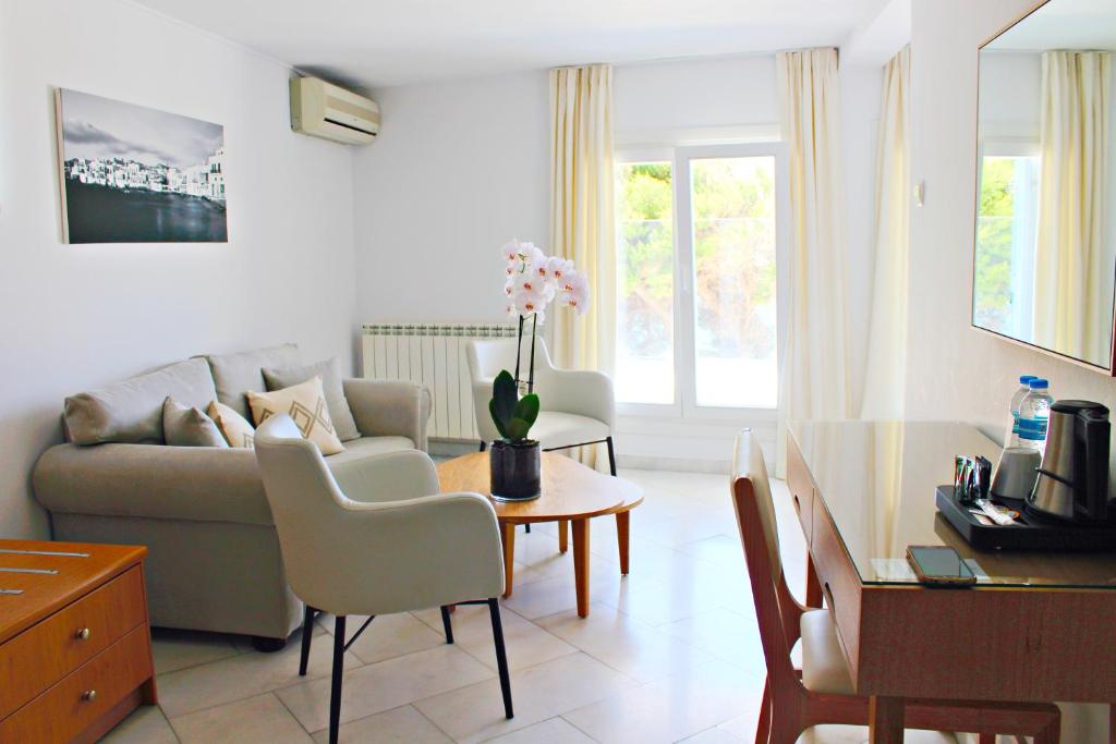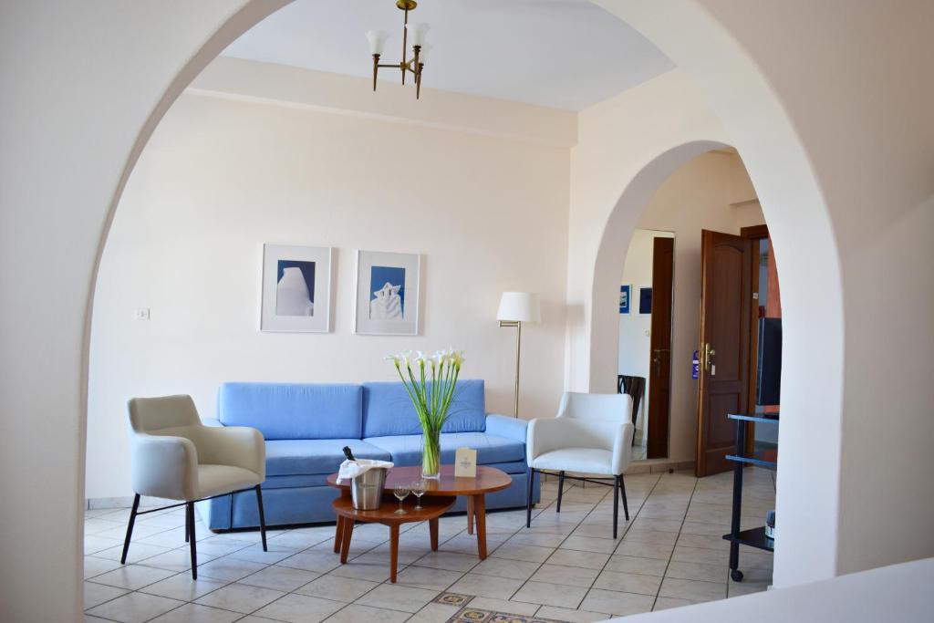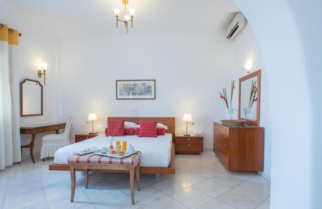 Camerele luminoase, decorate in nuanțe mediteraneene, dispun de balcoane private cu vedere spre orașul vechi sau mare. Terasa panoramică a hotelului este locul perfect pentru micul dejun tradițional grecesc sau pentru a admira apusul peste Marea Egee.