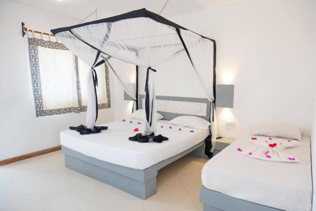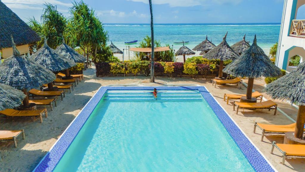 Cu vedere la malul mării, Hotelul AHG Sun Bay Mlilile Beach oferă cazare de 4 stele in Matemwe și are o piscină in aer liber, grădină și restaurant. La cațiva pași de plaja Matemwe și la 46 km de Muzeul Memorial al Păcii, proprietatea oferă o zonă de plajă privată, precum și un bar. Unitatea de cazare are o recepție deschisă nonstop, transferuri de spre/la aeroport, un birou de turism și WiFi gratuit.