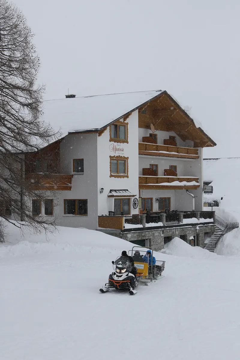 We pick up guests from the Tauplitzalm car park with our snowmobiles to the hotel (approx. 1.5 km), as it is not possible to drive to the house by car in winter.