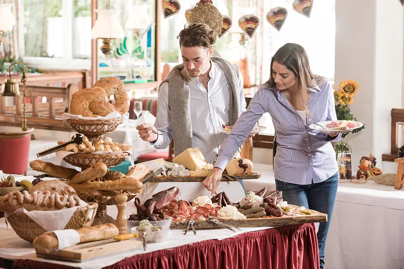 In the restaurant you will be spoiled by our chef with freshly prepared Austrian specialties. For example with a regional farmer's buffet, with a crispy roast pork and of course products from our region - alpine meadow bread, farmer's butter or Leberkäse - that really strengthens you after a strenuous day of skiing or hiking! There you will look forward to the culinary highlights every day! Guaranteed!