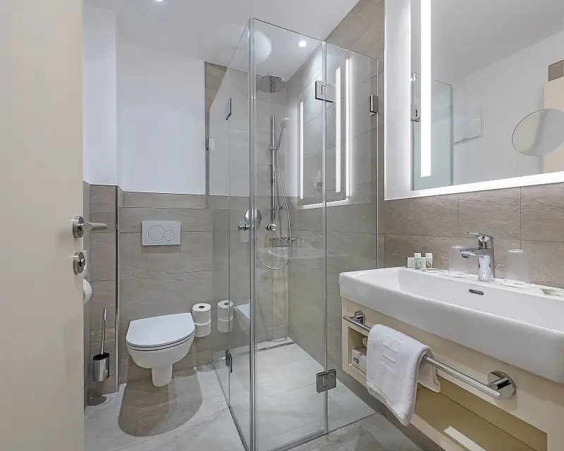 Our charming and traditional Hotel Alpina in the center of Bad Hofgastein has 67 feel-good rooms, a welcome reception with lobby, a fireplace room and the popular Zirbenstube. In the restaurant you will be spoiled by our chef with freshly prepared Austrian specialties. For example with a regional farmer's buffet, with a crispy roast pork and of course products from our region - alpine meadow bread, farmer's butter or Leberkäse - that really strengthens you after a strenuous day of skiing or hiking! There you will look forward to the culinary highlights every day! Guaranteed! All facilities at Hotel Alpina are accessible to all guests: Kneipp path, adventure shower. Except the wellness area with extra aroma sauna is only valid for the booked rooms in the Hotel Alpina (=main house)!!!