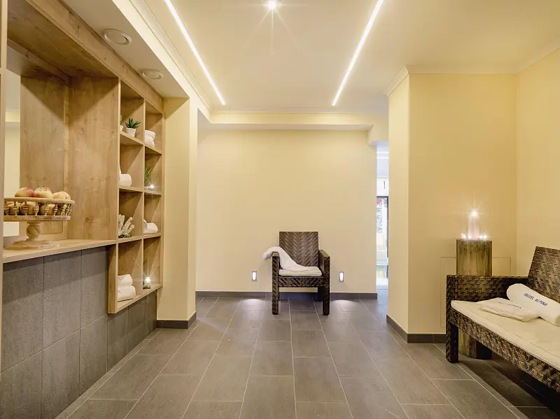 Except the wellness area with extra aroma sauna is only valid for the booked rooms in the Hotel Alpina (=main house)!!!