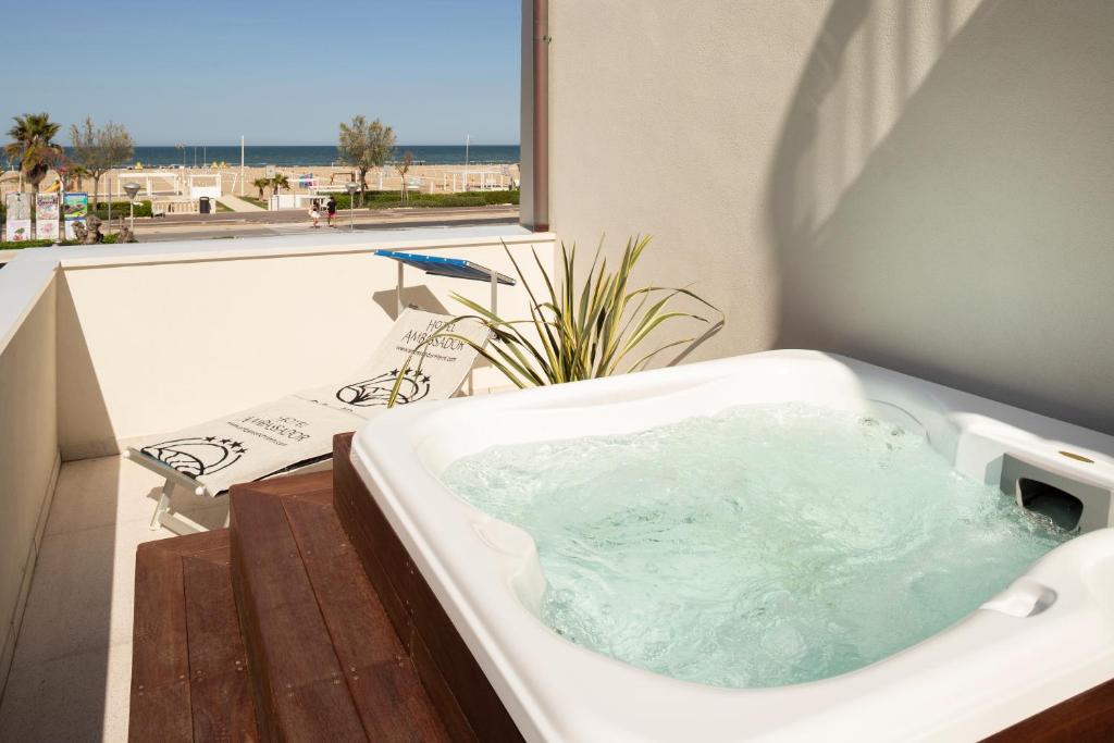 Hotelul Ambassador este situat la cativa pasi de plaja și de promenada pitorească din Rimini, in inima Marina Centro. Camerele sunt prevăzute cu balcon privat.