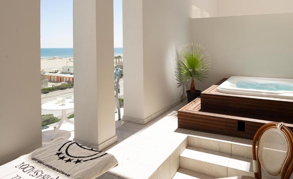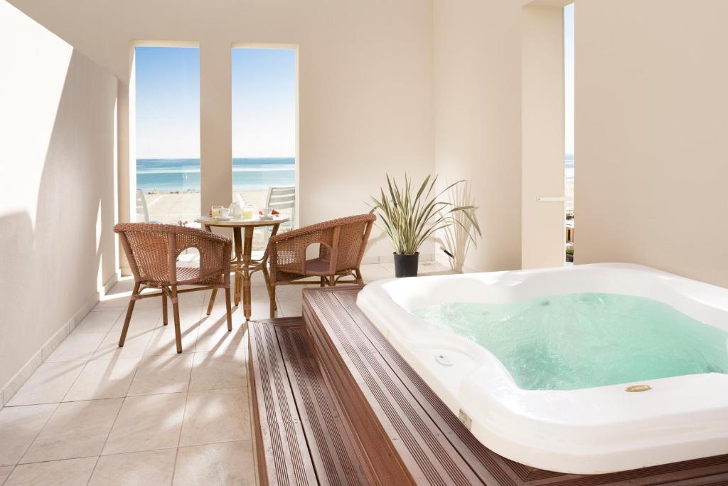 Camerele au aer conditionat, acces la internet WiFi si balcon privat, majoritatea cu vedere frumoasă la mare.
