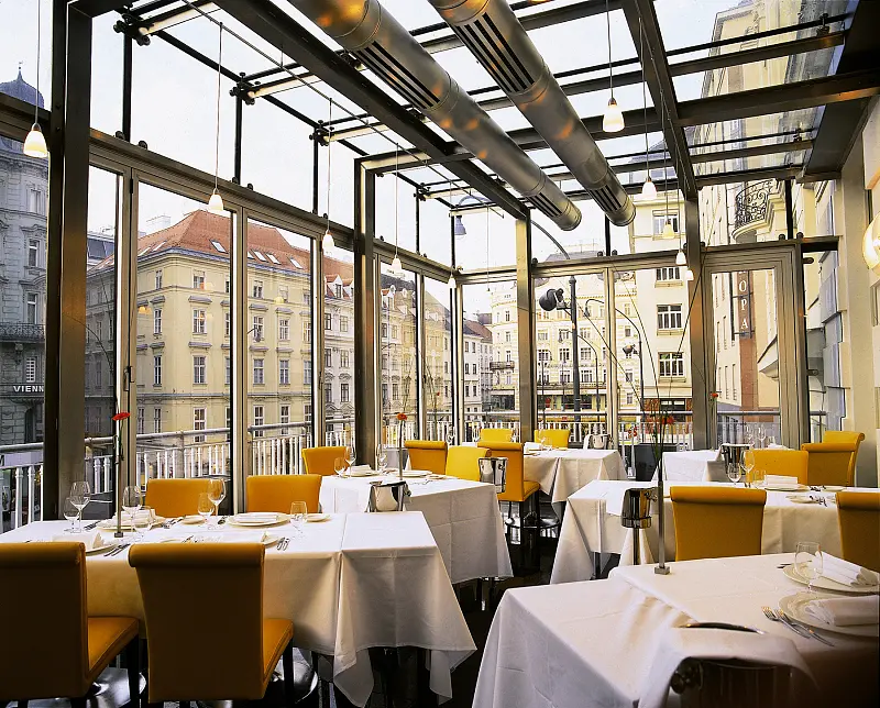 The rich buffet breakfast is served in the restaurant and winter garden with a view of the historic Neuer Markt square. The Atrium Bar serves cocktails, wine and coffee. In summer, you can relax in the outdoor café on Kärntner Straße.