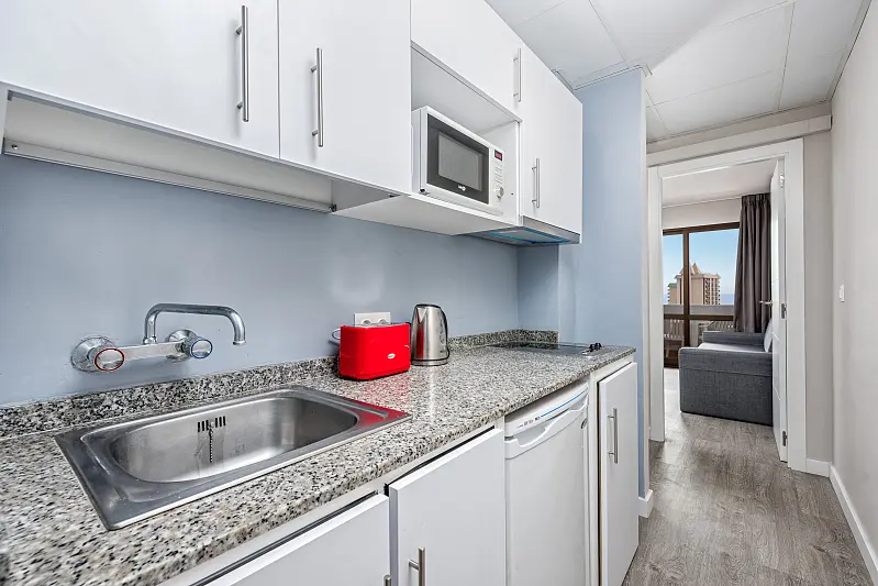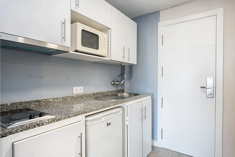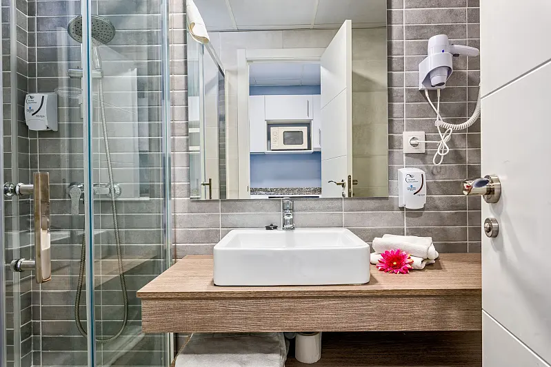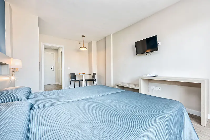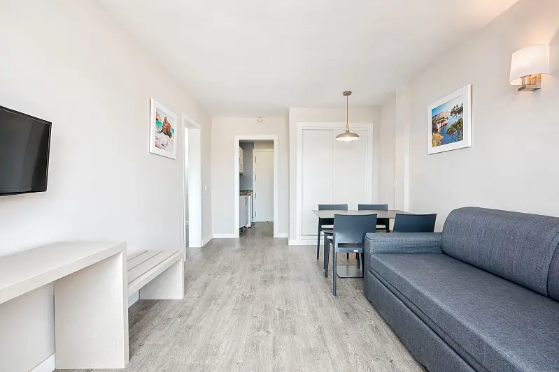 The aparthotel Hotel Apartamentos Veramar is located approximately 350 m from a beach. The nearest bars and restaurants can be found at a distance of around 650 m. The city centre is around 300 m away. A supermarket is around 850 m away. Nearby there is a leisure park which offers entertainment in high season. The hotel has a 24h reception, Wi-Fi, a lift, parking spaces (for a fee) as well as a TV lounge. In the outdoor area of the property you will find a pool (open all year). There is also a children's pool. Furthermore, outside you can find a terrace. You can store your valuables in the safe (extra fee), and your luggage in the hotel`s storage room. There is also a laundry service available at an additional cost to customers. If you want to explore the holiday region, you can use the car rental service close to the hotel (extra fee). Catering As catering services the hotel offers half board, full board and breakfast only. Breakfast is offered from the buffet. Your physical well-being is catered for by the cafeteria. Distances