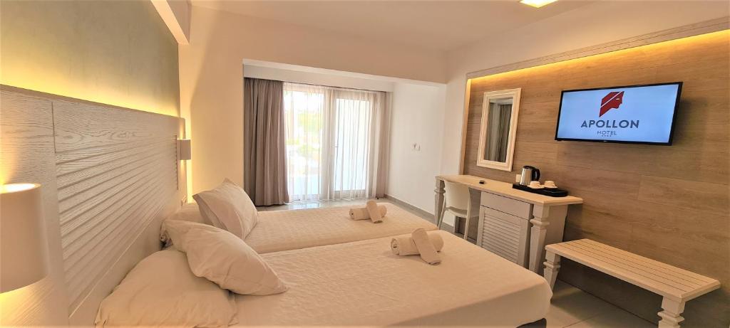 Personalul atent de la Hotelul Apollon este intotdeauna disponibil pentru a ajuta oaspeții. Dacă doriți să explorați insula, se poate aranja inchirierea unei mașini, motociclete sau biciclete.