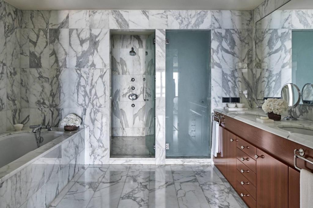 Restaurantul Enoteca al hotelului, premiat cu 2 stele Michelin, servește preparate rafinate din bucătăria mediteraneană. Hotelul are o serie de alte baruri și restaurante, inclusiv un bar langă zonă, care servește mesele ușoare in timpul verii.