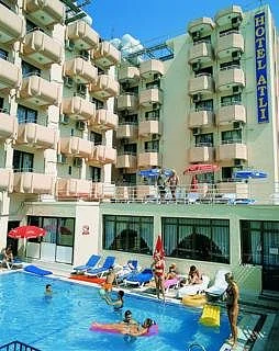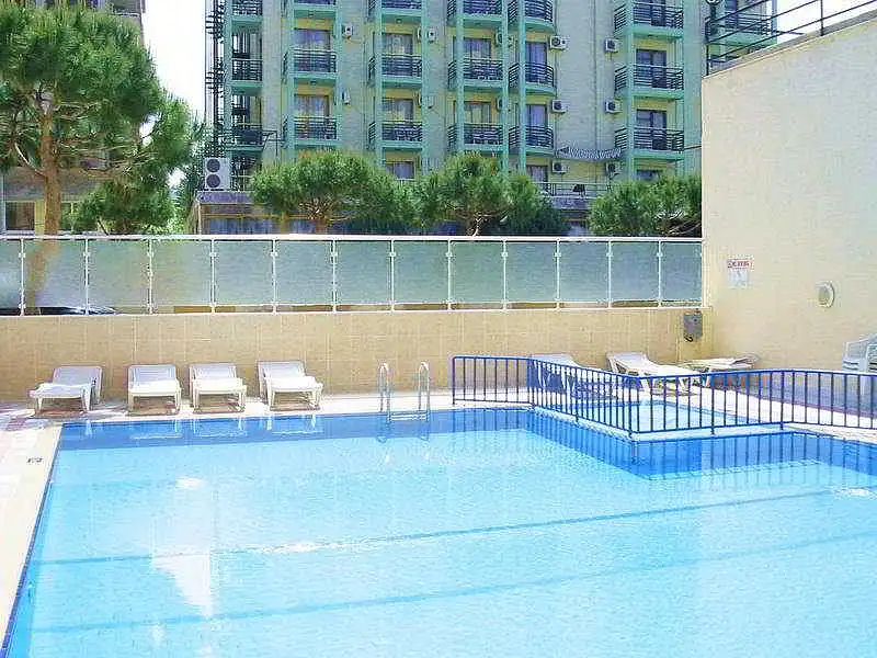 The hotel is located in Kusadasi, directly in the town centre, and within easy walking distance to the city centre, just in the area which is known as the 'hotel area' because most of the hotels in town are located here. Also the popular "Wednesday and Friday Market" is on the same street and only 2 minutes on food.The air-conditioned hotel offers a main and neighbouring building, each with 5 floors with a total of 97 rooms. Amongst the facilities count a foyer with a 24-hour reception desk, safes, a currency exchange facility and a lift. Also available at this hotel is a bar, a TV room, a restaurant and a WLAN access point. There is a car park for those arriving by car.Each of the rooms comes with a bathroom, bathtube, a hairdryer, a TV, a radio and a balcony or terrace. Individually controllable air conditioning and minibar are also to be enjoyed by guests in the rooms (under additional payment).Guests may make use of the swimming pool in the summer time.Breakfast is served buffet style.