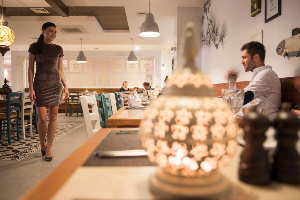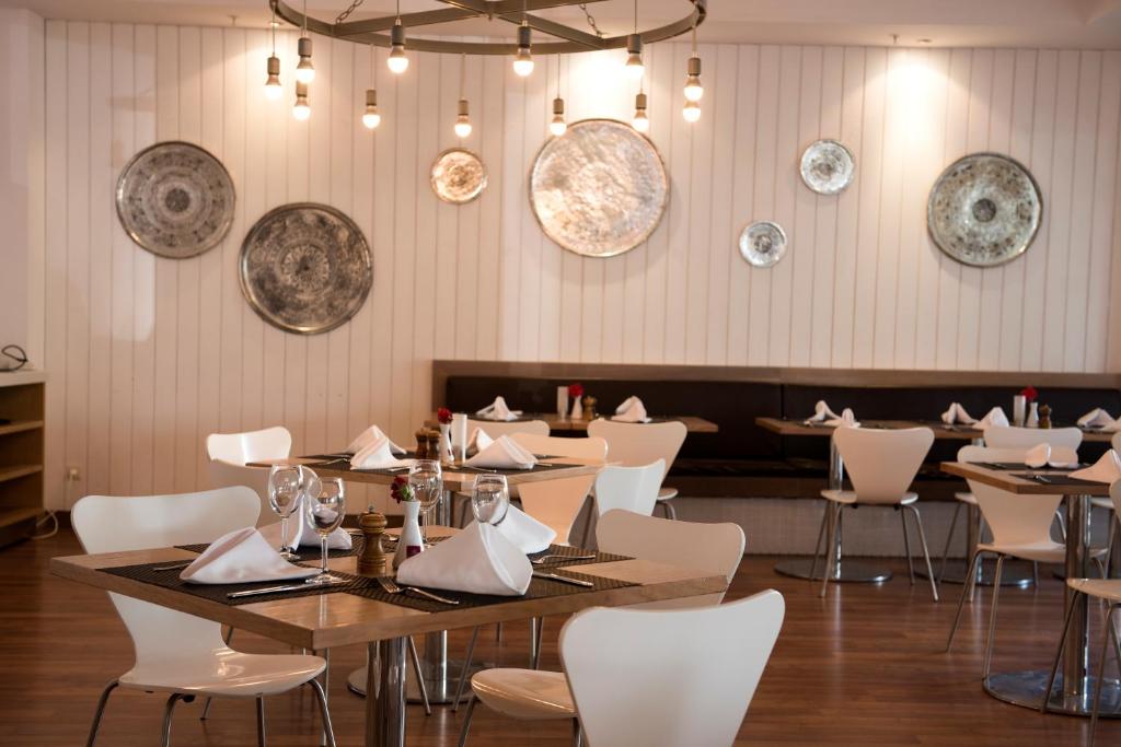 Oaspetii pot lua masa la restaurant. Mancăruri speciale fără lactoză și gluten pot fi servite la cerere. Proprietatea oferă, de asemenea, livrări de alimente de bază.