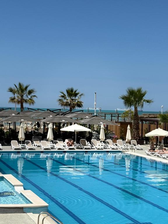 Locație pe malul mării: Hotelul Bleart din Durrës oferă o zonă de plajă privată și acces direct la malul mării. Oaspeții se pot relaxa pe terasa la soare sau se pot inota in piscina sezonieră in aer liber.