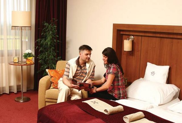 Localizare: hotelul este situat într-un cadru natural liniştit, la 600 m de complexul balnear şi la 25 de km de graniţa cu Austria.