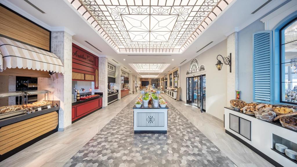 Proprietatea include 5 restaurante care oferă o varietate de opțiuni. Restaurantul Turkuaz servește toate cele 4 mese tip bufet, iar celelalte 4 restaurante sunt à la carte. Oaspeții pot savura mancăruri cu fructe de mare la Restaurantul Marin, iar restaurantul Gusto servește sau gamă largă de mancăruri din bucătăria italiană, fructe de mare și fripturi. Pasha Garden Grill servește mancăruri tradiționale turcești la grătar. Bistro Pushkin oferă mancăruri din bucătăria internațională. La proprietate există și 3 baruri.