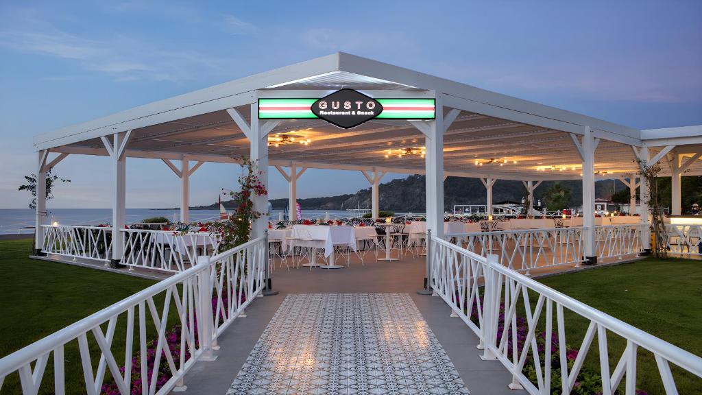 Renovat in anul 2022, Club Marco Polo - Premium All Inclusive se află pe coasta mediteraneană, pe o suprafață de 12,7 ha, și oferă o plajă privată cu nisip și pietriș. Proprietatea oferă 6 piscine in aer liber, un parc acvatic, un centru spa și 4 terenuri de tenis. De asemenea, există un club pentru copii.