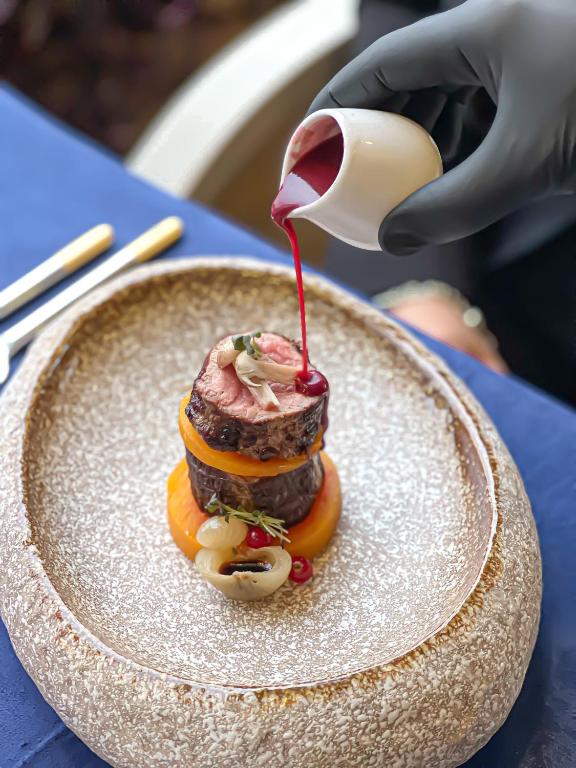 Restaurantul La Pergola Terrace Bar servește specialități tradiționale albaneze, precum și internaționale. Terasa oferă o șansă unică de a savura micul dejun cu o vedere uluitoare asupra pieței principale din Tirana.