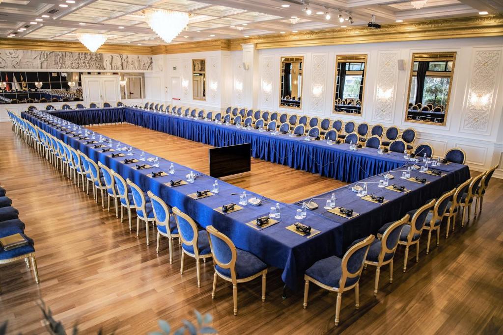 Centrul de conferințe al hotelului este unic in Albania. Găzduiește 15 săli de conferințe cu echipamente moderne și are o capacitate de pană la 1000 de participanți.