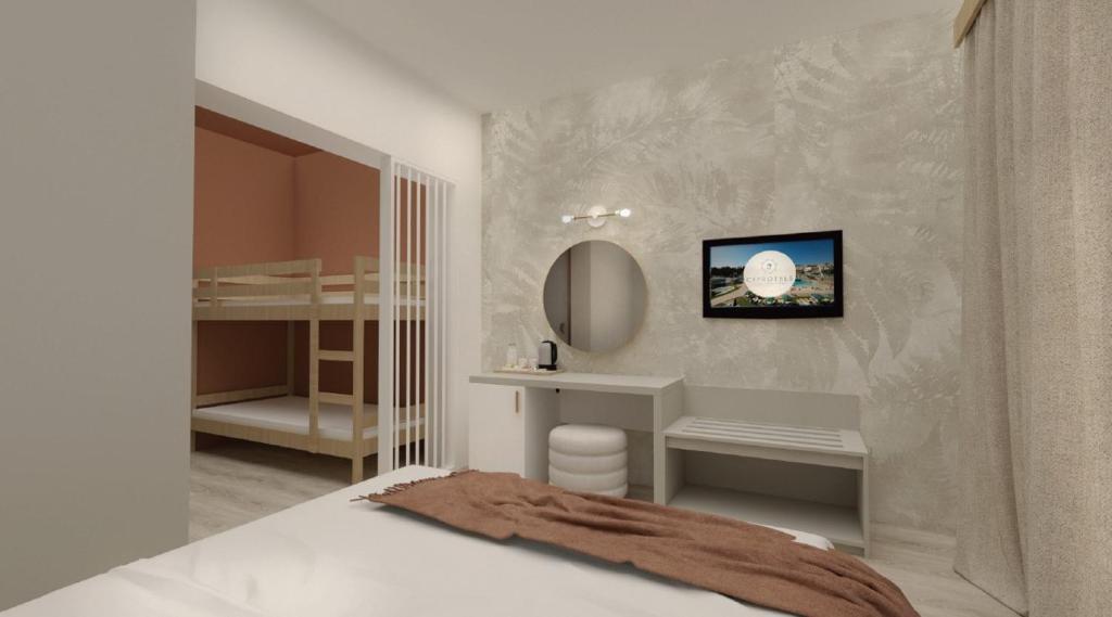 Toate camerele de la Cyprotel Faliraki sunt dotate cu televizor, aer condiționat și seif. Băile private includ uscător de păr și articole de toaletă gratuite.