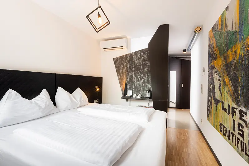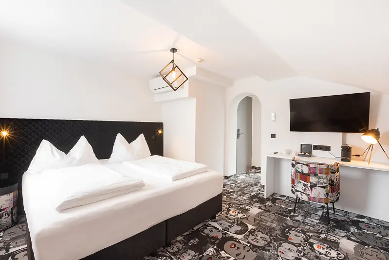 WELCOME TO THE KUNSTHOTEL “Edlinger” in Salzburg - a unique, superlative hotel that is characterized by its works of art by the artist Günter Edlinger. Every room and every corner of the hotel is decorated with his works and thus offers an insight into the artistic world. In addition to art, the hotel also offers its guests a private courtyard with a garden that invites you to linger and relax. The iconic bar is the perfect place to end the day and be inspired by the impressions of art. The hotel offers its guests style and comfort. The proximity to Salzburg city center is another highlight of the hotel and allows guests to explore the city and its sights on foot. Experience art, style and coziness at the Kunsthotel Salzburg - a place where you can feel at home and immerse yourself in a world of art at the same time. We look forward to welcoming you soon. facility / Ambiance: comfortable, modern target audience: business travellers, city trip travellers, couples, roundtrip travellers, senior citizens, shorttrip travellers, young travellers, cultural travellers, families
