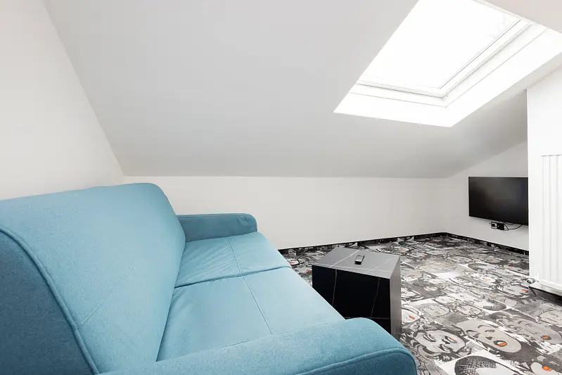 number of beds: double bed 1x, sofa bed for 1 person 1x, cot as overcrowding possible: No