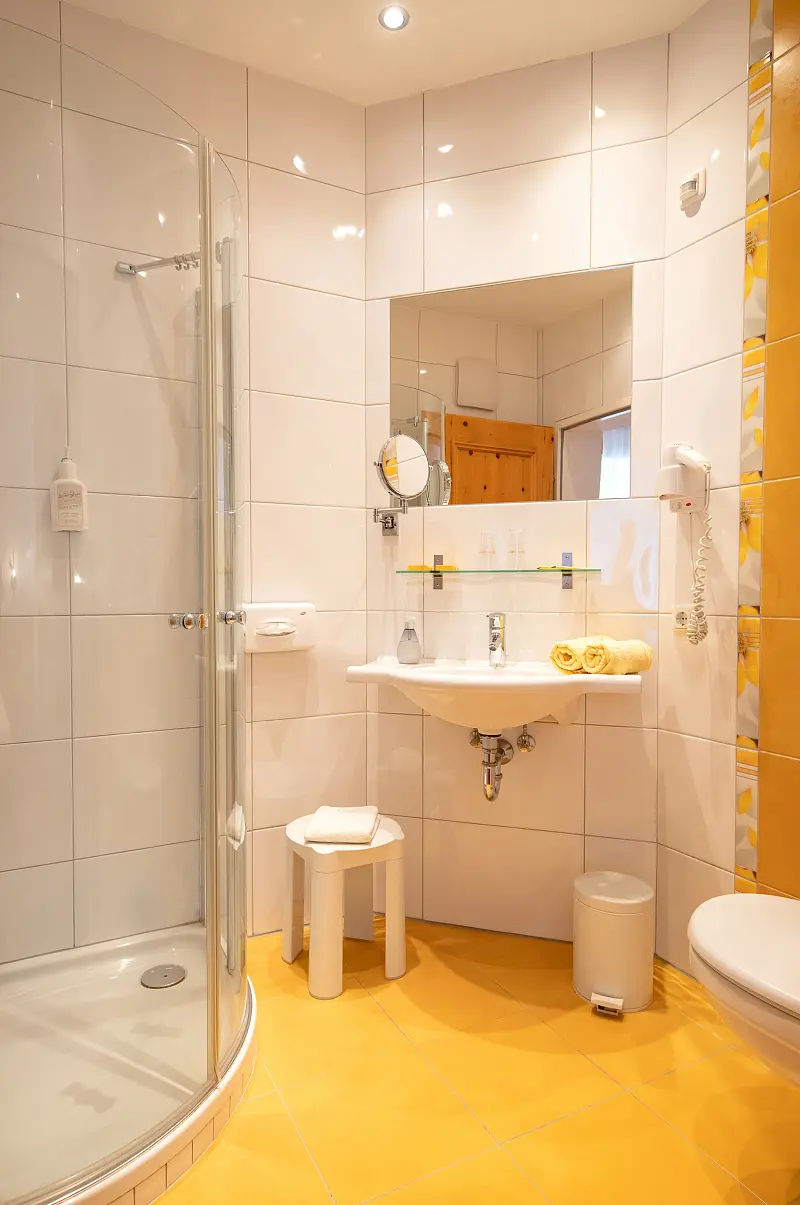 bath room: toilet, hair dryer, shower, bath robe - optional payable in resort, EUR 7.00 per person and stay