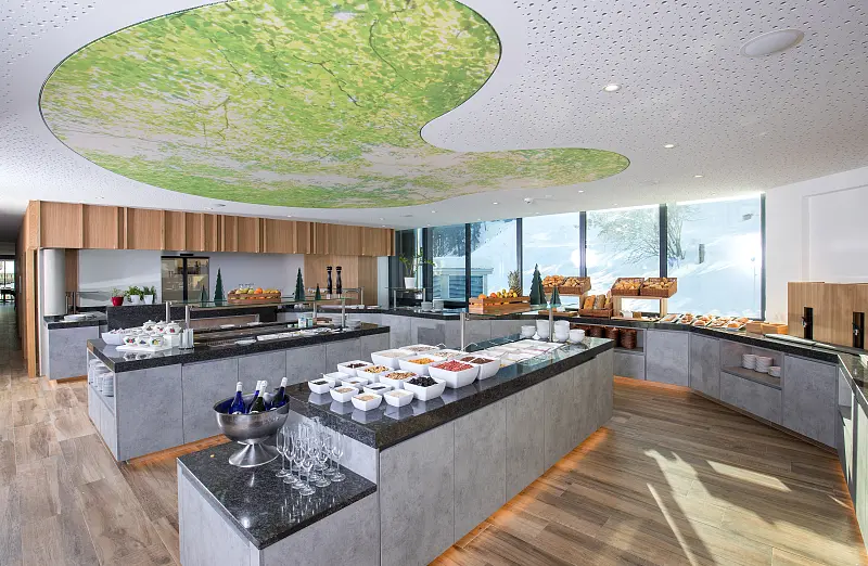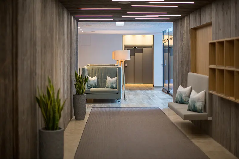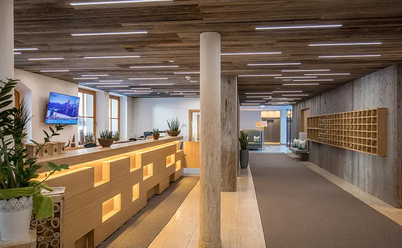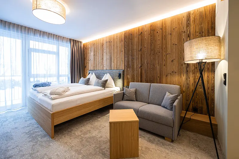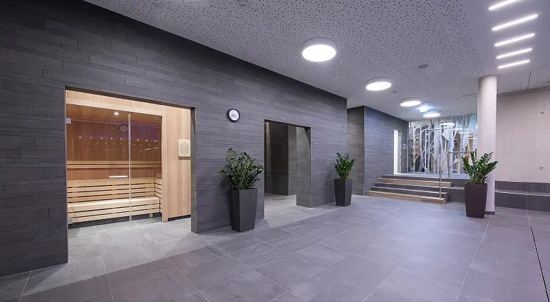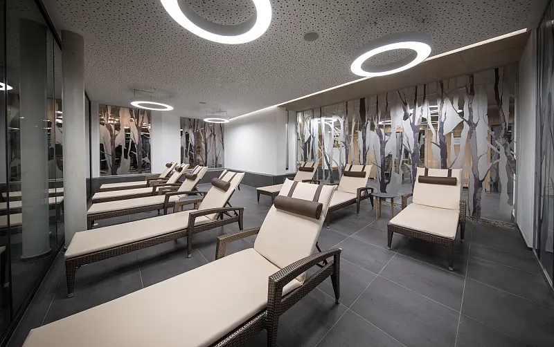 Top hotel consisting of 3 buildings connected underground with dignified and luxurious ambience. Additional description of the wellness area: Adult area - additional herbal sauna, earth sauna in the mountain, plunge pool, experience showers; Family area with family sauna (textile zone) and quiet room.