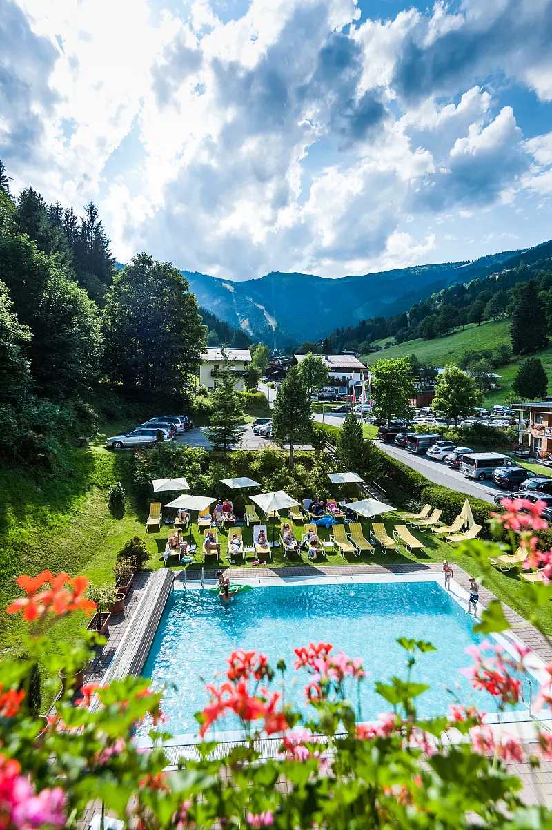 size wellness area 1000 m², outdoor swimming pool 11 m x 6 m, indoor swimming pool 14 m x 7 m, spa area: children of 0 years. only in the company of an adult - free of charge, steam bath, sauna, finish sauna, bio sauna, sanarium, infrared cabin, kneipp basin, whirlpool - free of charge, relax room, nudity area, massage - on request, optional payable in resort, garden, lawn, deck chair - free of charge, sun umbrellas - free of charge