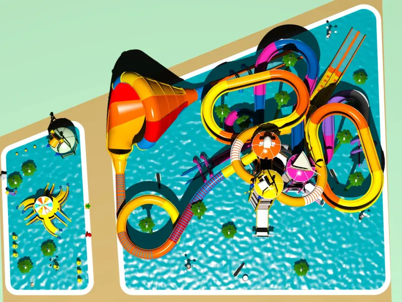 Parcul acvatic, deschis intre 15 aprilie și 15 octombrie, oferă varietate. (Tobogane mari de la 1,20 m)