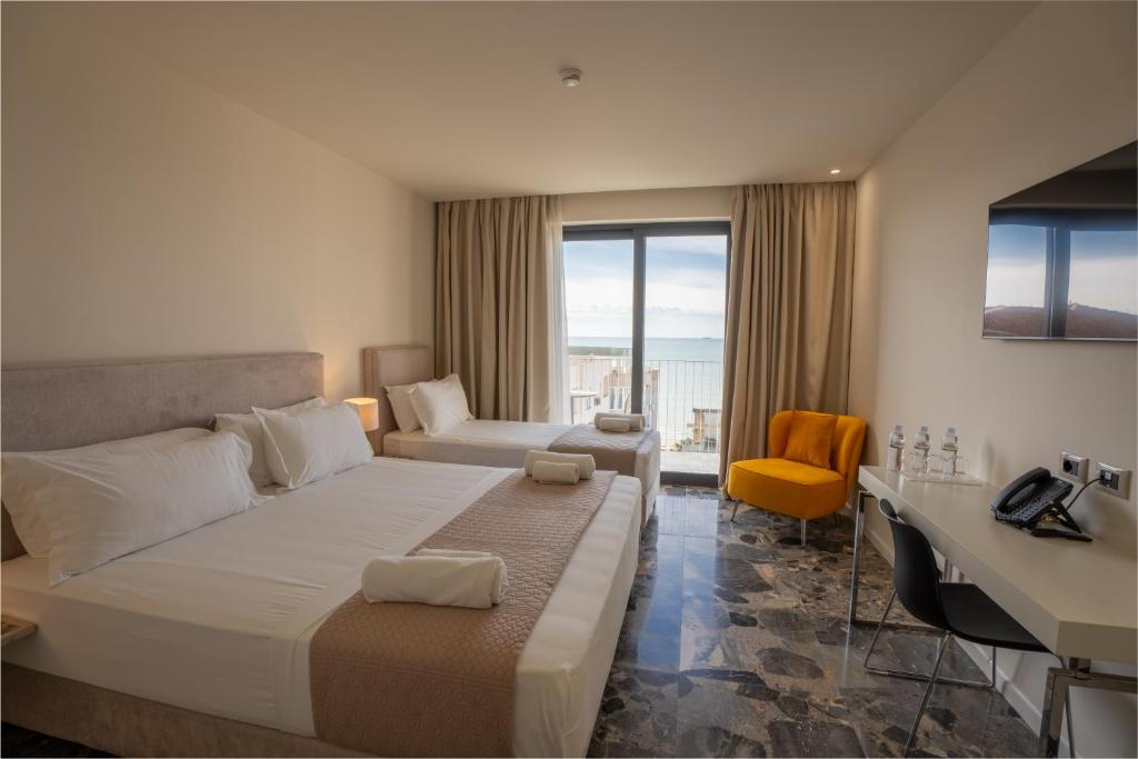 Hotelul va pune la dispoziție oaspeților camere cu aer condiționat, birou, ceainic, frigider, minibar, cutie de valori, TV cu ecran plat, balcon și baie privată cu bideu. Camerele de la Hotelul Durres Bay sunt dotate cu lenjerie de pat și prosoape.