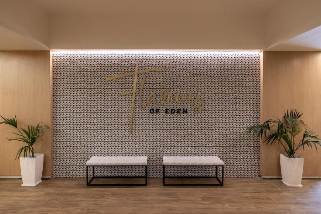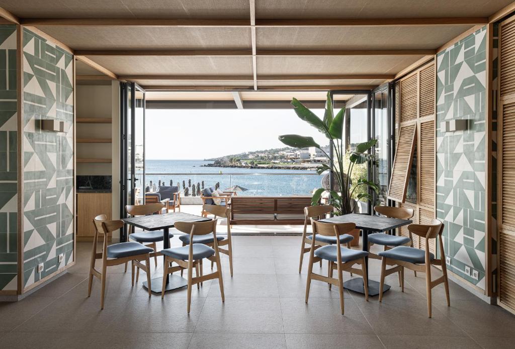 Oaspeții pot savura preparate din bucătăria internațională la restaurantul à la carte cu vedere la mare sau mancăruri grecești la taverna Dikti de pe malul mării. Hotelul pune la dispoziție in total 8 restaurante à la carte, pentru a satisface toate gusturile. Oaspeții trebuie să respecte un cod vestimentar la cină. Băuturile sunt servite la barul elegant cu șampanie și la diversele baruri de la piscină.