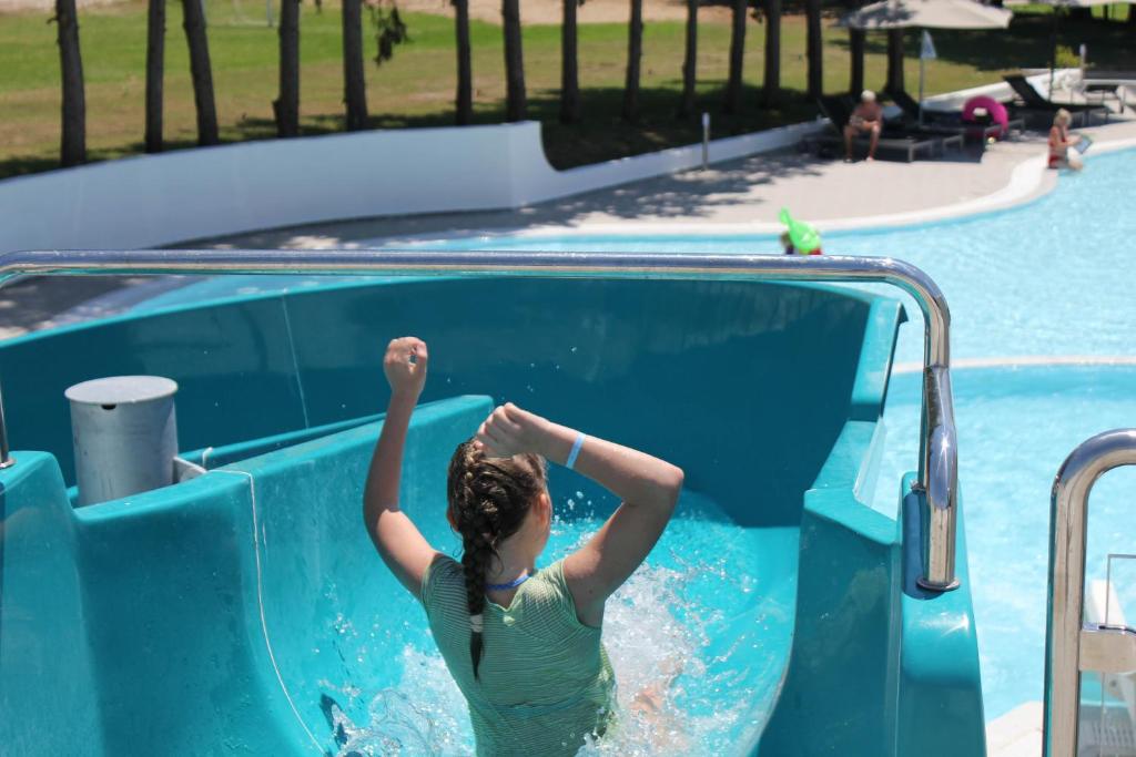 Piscina de dimensiuni olimpice este inconjurată de șezlonguri, iar piscina copiilor este situată langă cascadă. Oaspeții au la dispoziție un bar langă fiecare piscină. Bungalourile oferă acces la o piscină privată.