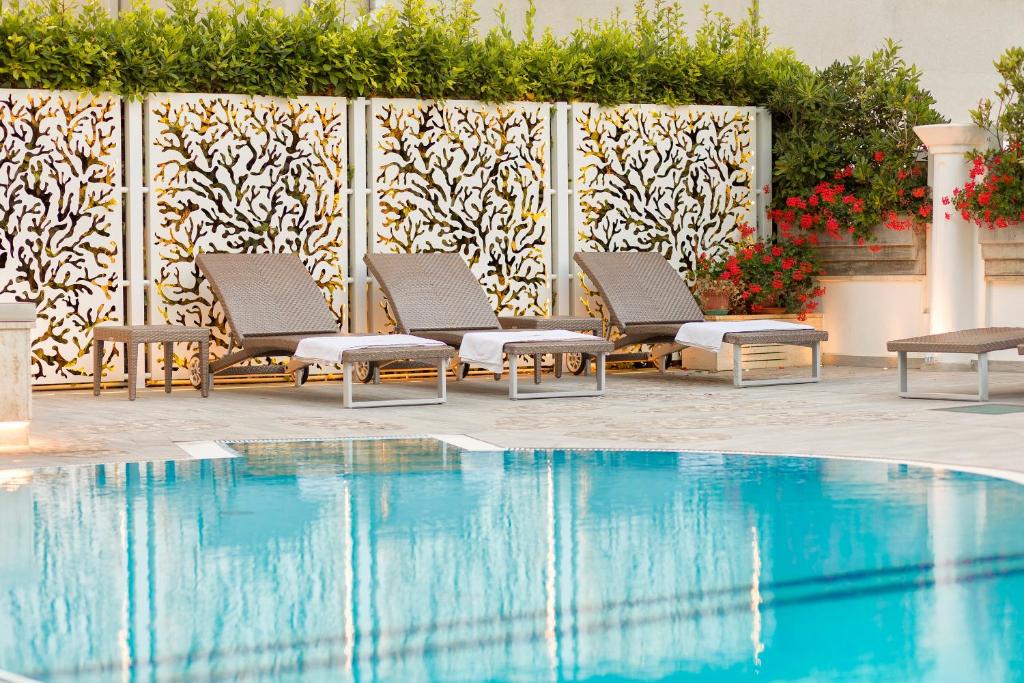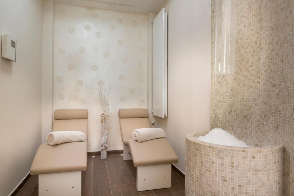 Camerele decorate in stil mediteranean elegant sunt dotate cu aer conditionat, TV LCD cu canale prin satelit si minibar. Unele camere au vedere la Marea Adriatică.