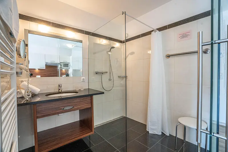 In our family-friendly house you can expect a personal atmosphere and a comfortable ambience in the middle of the mountains. Ideal for anyone who wants to take a break from everyday life and enjoy nature. As a hotel guest we serve you a rich breakfast buffet every day. In the evening we spoil you with delicious dishes from local and international cuisine. In addition to numerous hiking trails and biker routes, the region offers countless excursion destinations for children and adults. You can relax in our large wellness area with jacuzzi and 8 different saunas, in the swimming pool as well as on the sun terrace and lawn. Children love to romp around on the playground and enjoy the "home advantage" in the associated petting zoo. The room type DB02 Double Economy has a double bed or two single beds. The room type SI01 Standard Single Room Balcony has a double bed or two single beds. facility / Ambiance: family friendly, rustic, home-made target audience: sport & active travellers, group travellers, low budget travellers, couples, nature lovers, senior citizens, wellness travellers, young travellers, mountainbiker / bicycle travellers, families, singles with kids