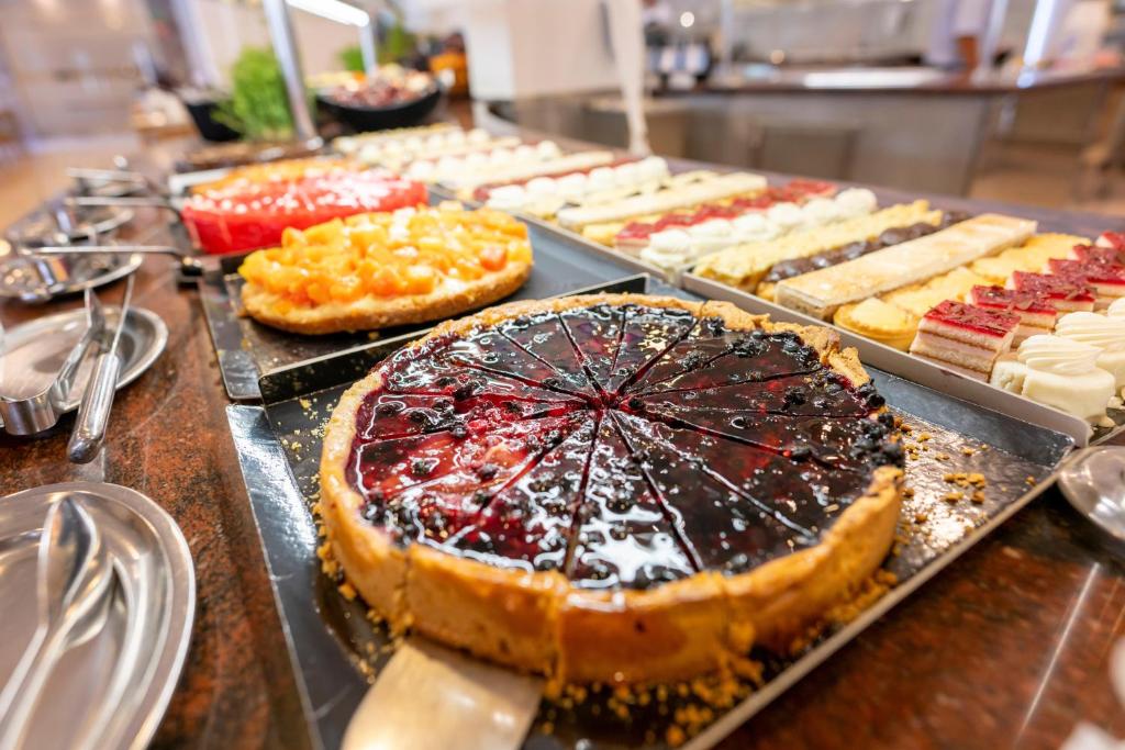 Restaurantul hotelului GF Fañabe oferă un bufet variat, cu bucătărie deschisă și mese tematice regulate. Barul informal de la piscină serveste mese ușoare si cocktail-uri, iar barul din hol oferă muzică live. Accesul la internet WiFi este gratuit.