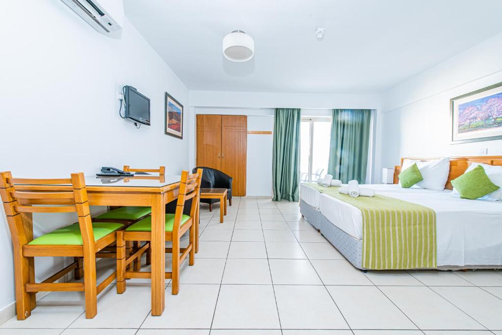 Locație pe malul mării: Golden Star Beach din Protaras oferă acces direct la malul mării, o grădină luxuriantă și o terasă spațioasă. Oaspeții se pot relaxa langă piscina sezonieră in aer liber sau se pot bucura de soare pe balcon.
