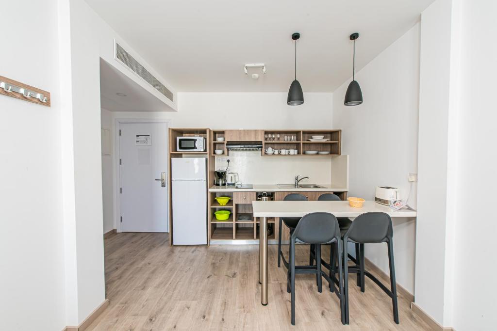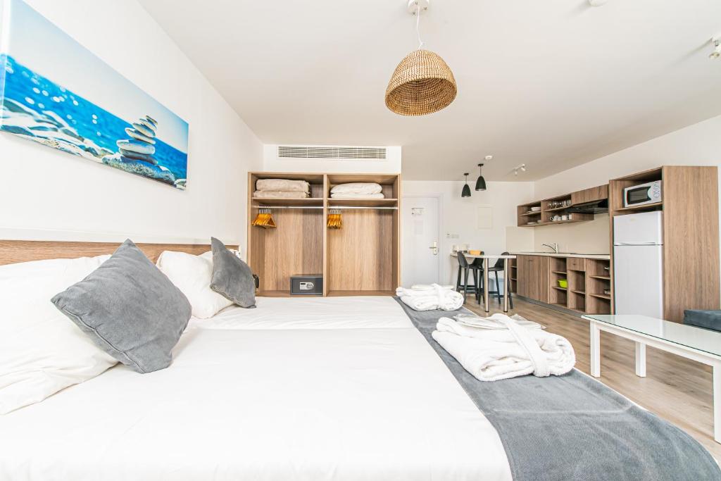 Cazare confortabilă: Aparthotelul oferă apartamente cu aer condiționat, chicinete, băi private și facilități moderne. Fiecare unitate include un balcon cu vedere la grădină, piscină sau munte, asigurand un sejur confortabil.
