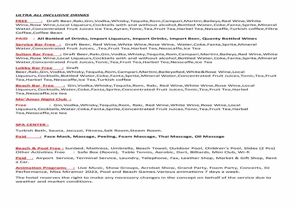 MIRAMOR HOTEL & Spa - ULTRA ALL INCLUSIVE SELECTION se află in Kemer, la 7 minute de mers pe jos de Plaja Camyuva, și oferă o grădină, o zonă de plajă privată, un lounge comun și parcare privată gratuită. Printre facilitățile disponibile la această proprietate se numără un restaurant, un club pentru copii și room-service, precum și WiFi gratuit in intreaga proprietate. Oaspeții au la dispoziție o piscină in aer liber, facilități de conferințe și petreceri, un centru de fitness, o terasă, o piscină interioară, o saună și un parc acvatic.