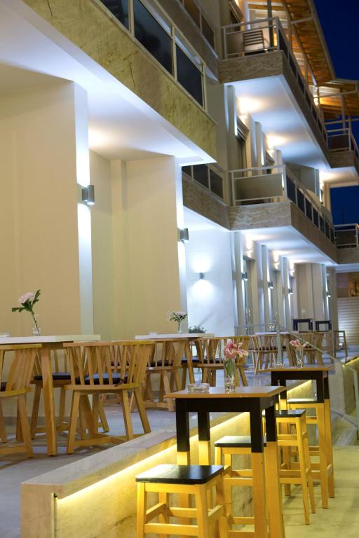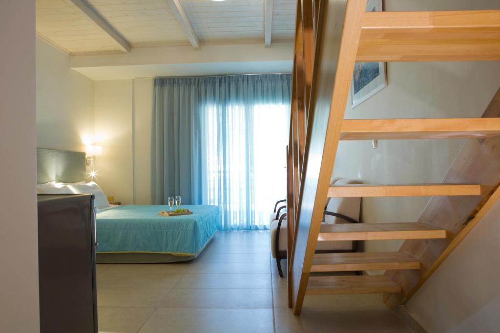 Toate unitățile de cazare sunt dotate cu aer condiționat, balcon și terasă. Există, de asemenea, un frigider și un fierbător electric. Unele oferă vedere la Marea Ionică, iar majoritatea unităților sunt dotate cu paturi și mobilier Coco-Mat și cabine de duș cu jeturi de hidromasaj.