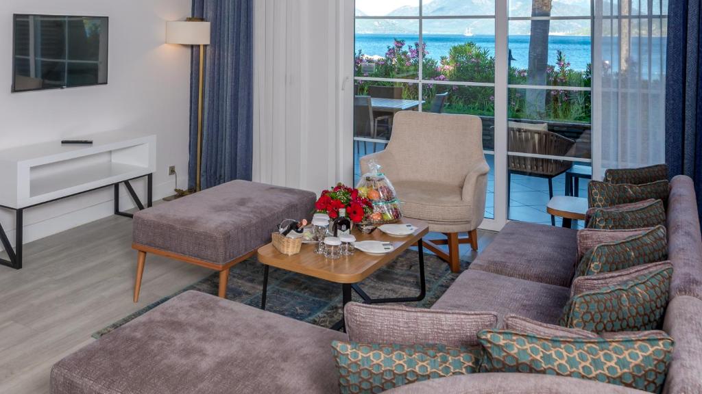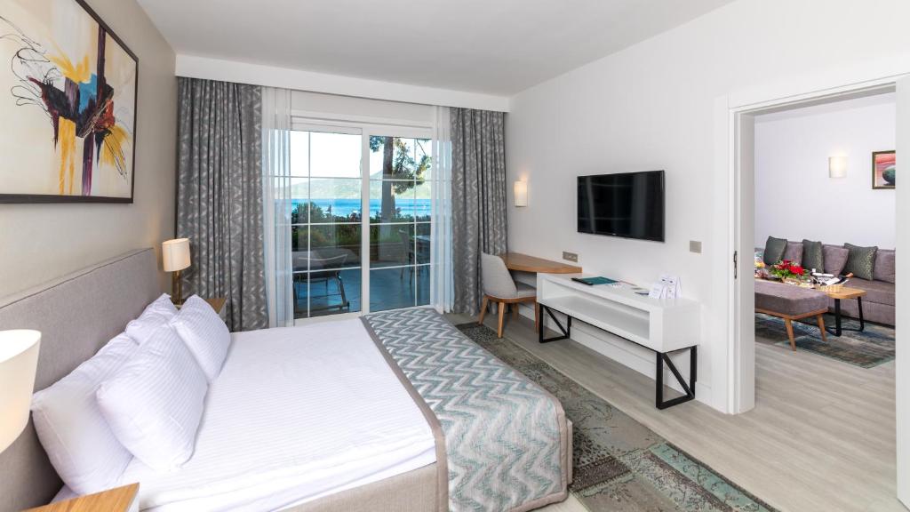 Situat pe coasta Mării Egee, acest hotel oferă plajă privată. Proprietatea este inconjurată de o pădure de pin si are 2 piscine in aer liber, 3 tobogane cu apă si centru spa. De asemenea, aveți la dispoziție acces gratuit la Wi-Fi.