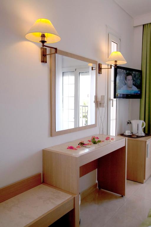 Camerele luminoase și spațioase sunt dotate cu aer condiționat, TV prin satelit și balcon - multe dintre ele oferind vedere spre Marea Egee. Oaspeții se pot relaxa la piscina in aer liber, inconjurată de șezlonguri și umbrele, sau pot savura băuturi răcoritoare la barul de la piscină.