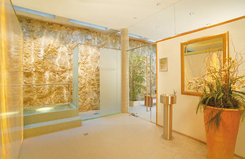 size wellness area 400 m², indoor swimming pool 15 m x 7 m, steam bath 2x - free of charge, finish sauna - free of charge, bio sauna - free of charge, infrared cabin - free of charge, kneipp basin, relax room 1x, massage - on request, optional payable in resort, beauty center - optional payable in resort, lawn, deck chair - free of charge, sun umbrellas - free of charge