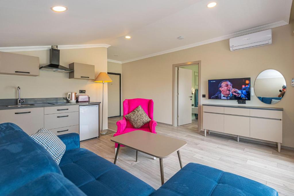 Centrul orasului Fethiye se află la 5 minute cu microbuzul de hotel. Laguna albastră din Olüdeniz este situată la aproximativ 30 minute cu masina, iar Aeroportul Dalaman se află la 45 de minute.