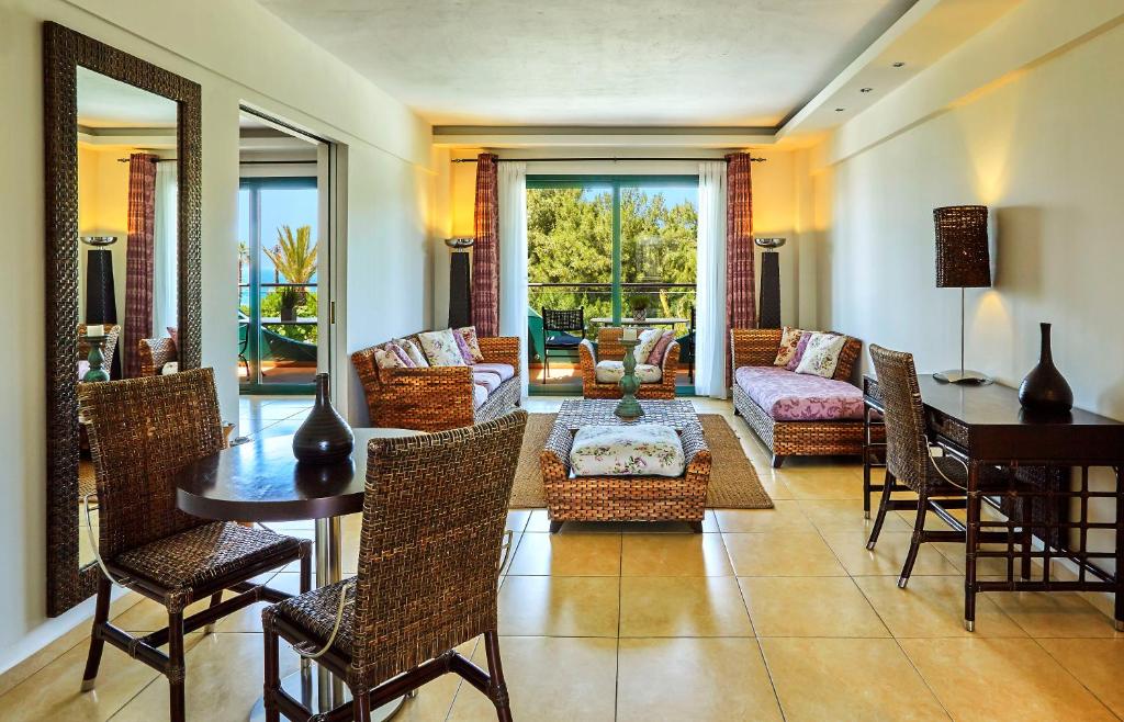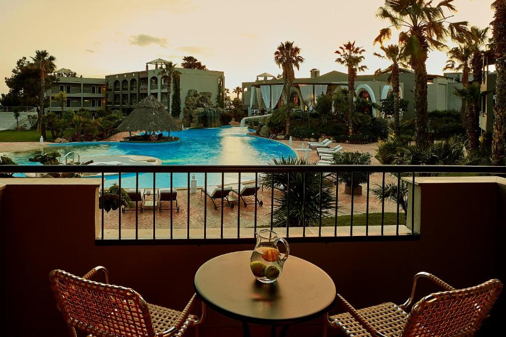 Oaspeții se pot bucura de o băutură la barul de pe plajă Atrium sau la barul de la piscină Palms, admirand vederea la mare sau la piscină. Hotelul are, de asemenea, 2 restaurante care servesc bucătărie mediteraneană și internațională.