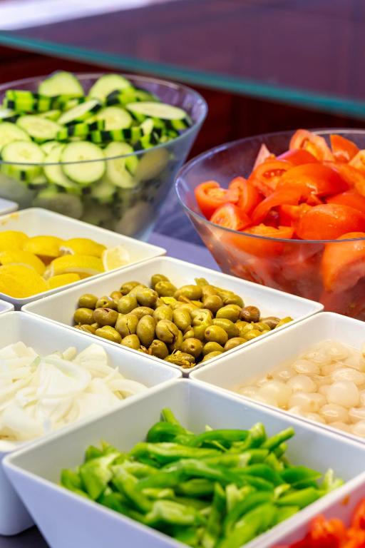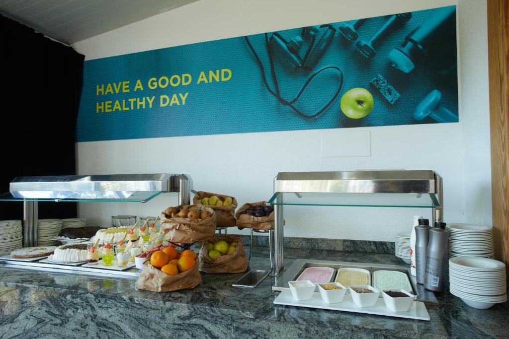Restaurantul tip bufet al hotelului servește o varietate de mancăruri.