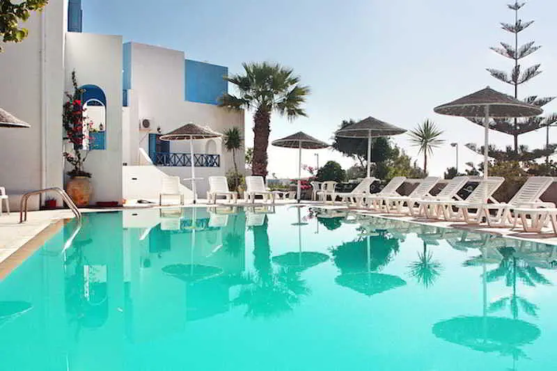 Comfortable and traditional hospitality at a hotel with a pool in Messaria Santorini.