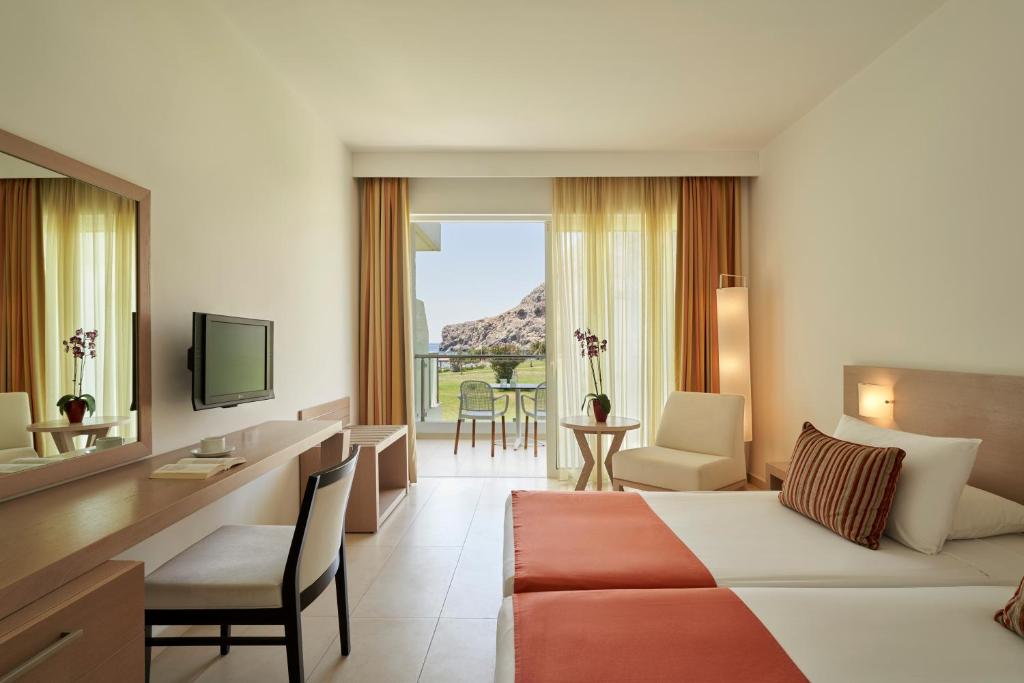 La acest hotel, toate camerele sunt echipate cu birou și televizor cu ecran plat. Baia proprie oferă o cadă, articole de toaletă gratuite și un uscător de păr. La Atlantica Kolymbia Beach, toate camerele sunt dotate cu lenjerie de pat și prosoape.