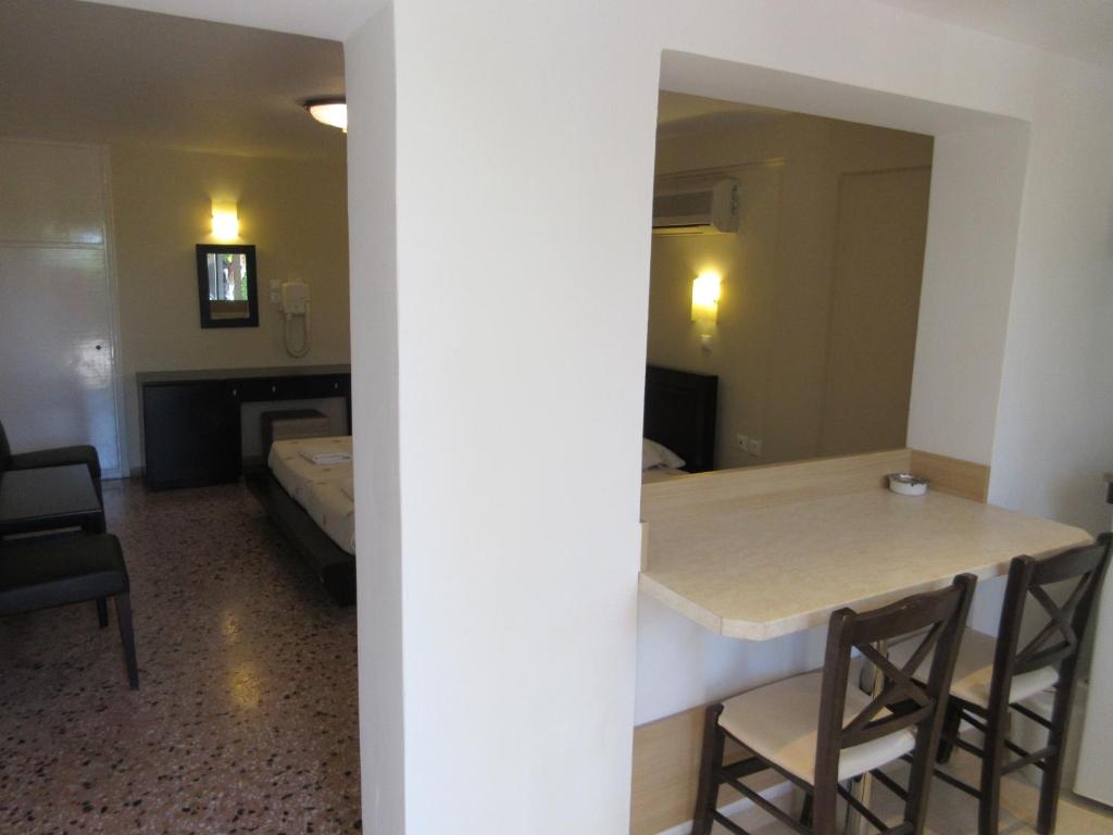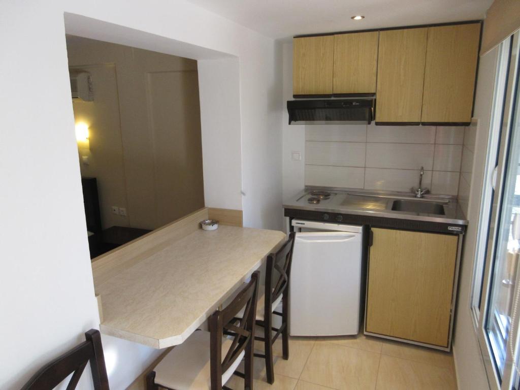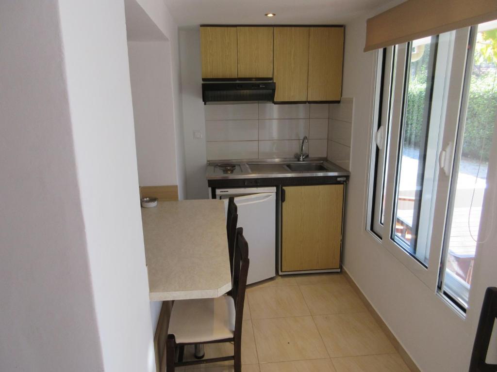 Bucătăria are un frigider, o plită și prăjitor de paine, precum și un ibric electric.