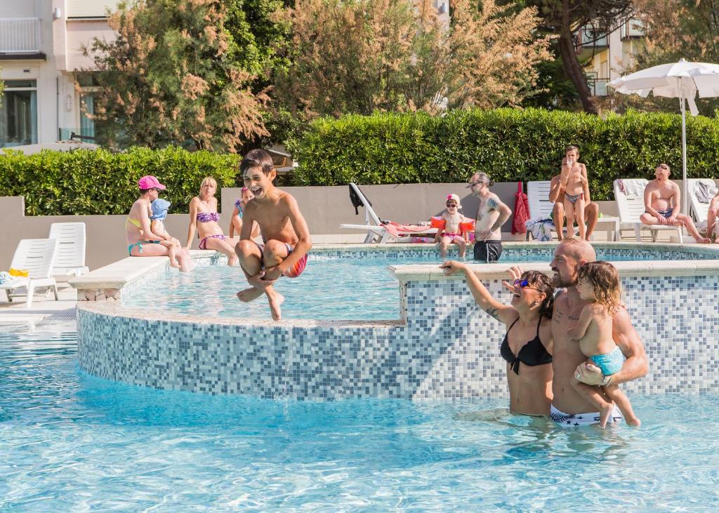 The swimming pool under the same ownership is outdoor and seasonal. In summer it is fully equipped with sun loungers and parasols. The pool is set 200 metres from the hotel, and also features a separate whirlpool.