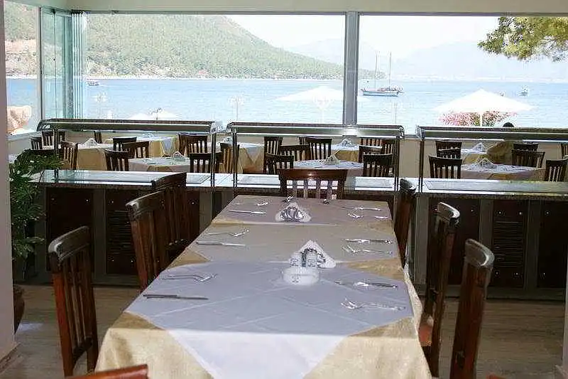 The small, popular Marbas Hotel is conveniently situated directly on the beach in the renowned holiday resort of Içmeler on the Turkish Riviera, surrounded by green pine tree-clad mountains reaching into the deep blue of the Mediterranean Sea. The restaurants, bars, cafés and shops of the resort centre can be reached within just a few walking minutes, while the city of Marmaris with its historical sites is just 8 km away. |Guests are welcomed in a lobby with stunning views over the pool and the picturesque bay of Içmeler. The bright and comfortable rooms have air-conditioning and some of them also boast panoramic sea views. The main restaurant has a terrace area with superb sea views, while guests may also choose a second restaurant and the Liberty Bar on the beach. This hotel is a great choice for couples and friends looking for a tranquil place for relaxing holidays.|