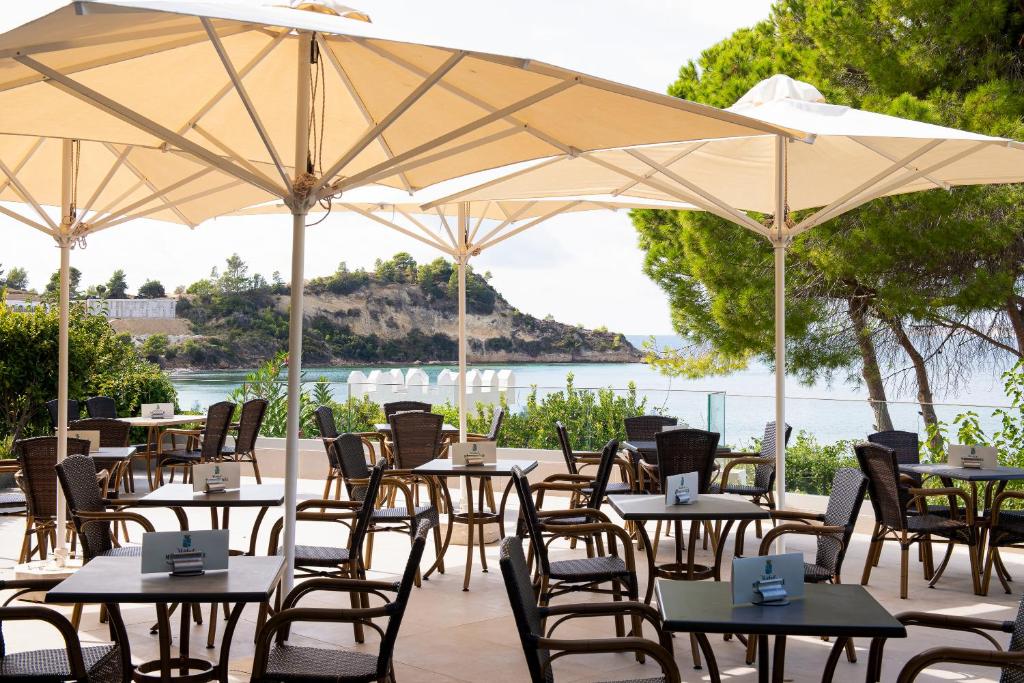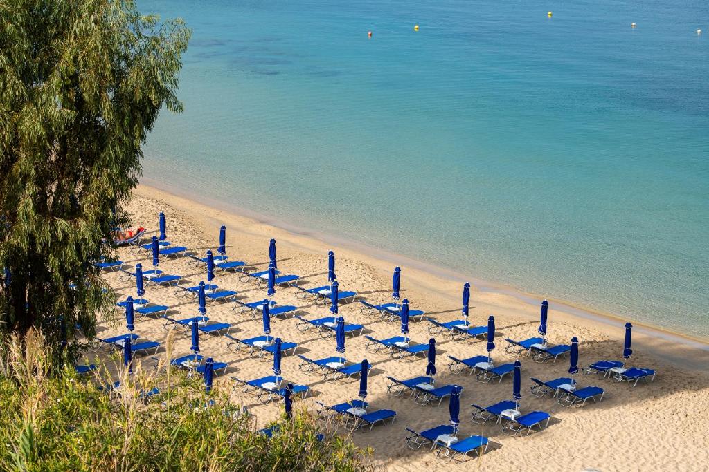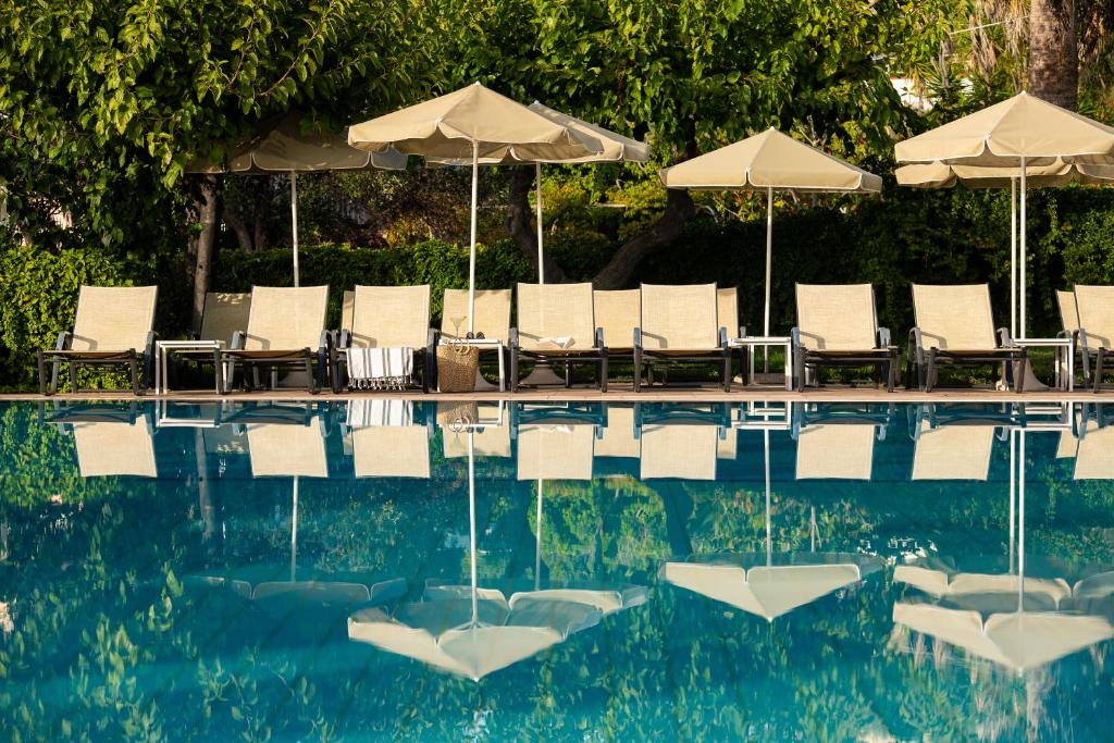 Toate camerele spațioase, decorate elegant au balcon mobilat, cu vedere la grădină sau la Marea Ionică. Fiecare dintre ele include un TV prin satelit și un frigider. Baia privată este dotată cu o cadă si un uscător de păr. Se asigură prosoape de plajă gratuite.